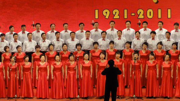通过高唱红歌,抒发了教职工的爱党爱国情怀,使大家在一首又一首的红色旋律中得到心灵的洗礼,达到了弘扬民族精神的目的。