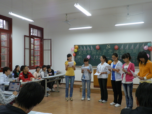整场组织生活以解读党史、党史知识问答、传唱红歌、诗歌朗诵、情景剧等内容丰富的形式进行,现场气氛热烈而愉快。通过回顾那一段段峥嵘岁月,使同学们的脑海中不断浮现我党发展壮大的历史画卷,不仅加深了自身对党的向往与憧憬,也获得了许多收获与感悟。随后,大家结合党史畅所欲言,发表了自己的看法,提出了感悟与思考。支部委员史梦娜认为:“中国能够发展为现在这样一个民主富强的国家,与我党的正确方针政策是分不开的,我们要以此为契机,深入学习我党的光辉历程,在总结历史经验教训的基础上不断创新,积极发挥大农专业员工踏实肯干,勇于专研的精神;关心三农,服务三农,为我国农业现代化进程贡献自己的力量。同学们也纷纷表示:“将用自己独特的方式为我党成立九十周年华诞奉献一份特殊的礼物。