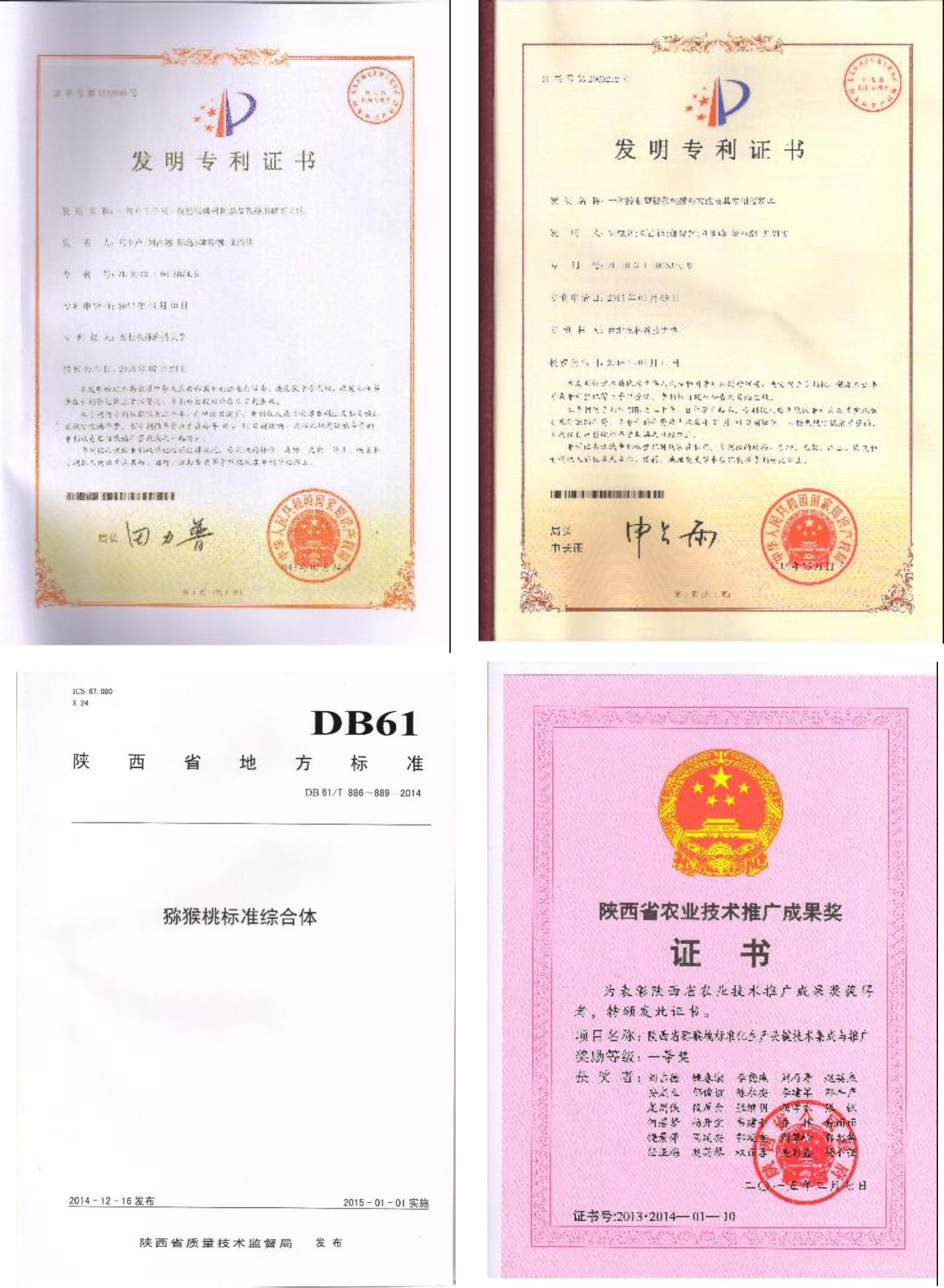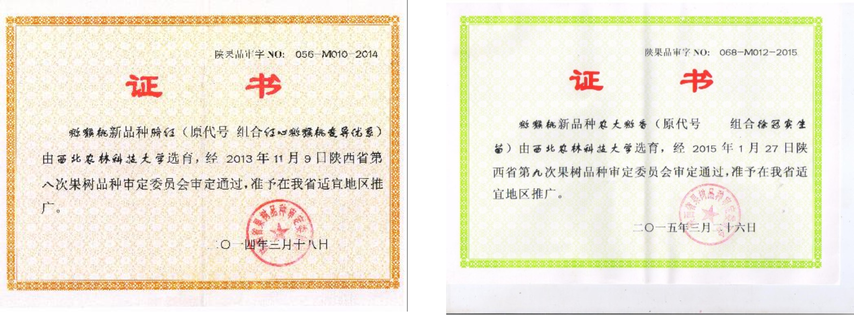 A collection of kiwifruit germplasm resources included 160 copies, 23 species (varieties), and 166 varieties (excellent lines); sixteen excellent materials were selected, and two new kiwifruit varieties, "navel red" and "Nongda Kiwi aroma," were selected. 37 scientific papers were published; four books on kiwifruit were published; formulated Shaanxi Province local standards-standard kiwi complex; five scientific and technological achievements were identified, of which one was awarded the second prize of the National Agriculture, Animal Husbandry and Fishery Award; Shaanxi Province Agricultural Technology Extension Achievement Award; and four nationally authorized invention patents were obtained.