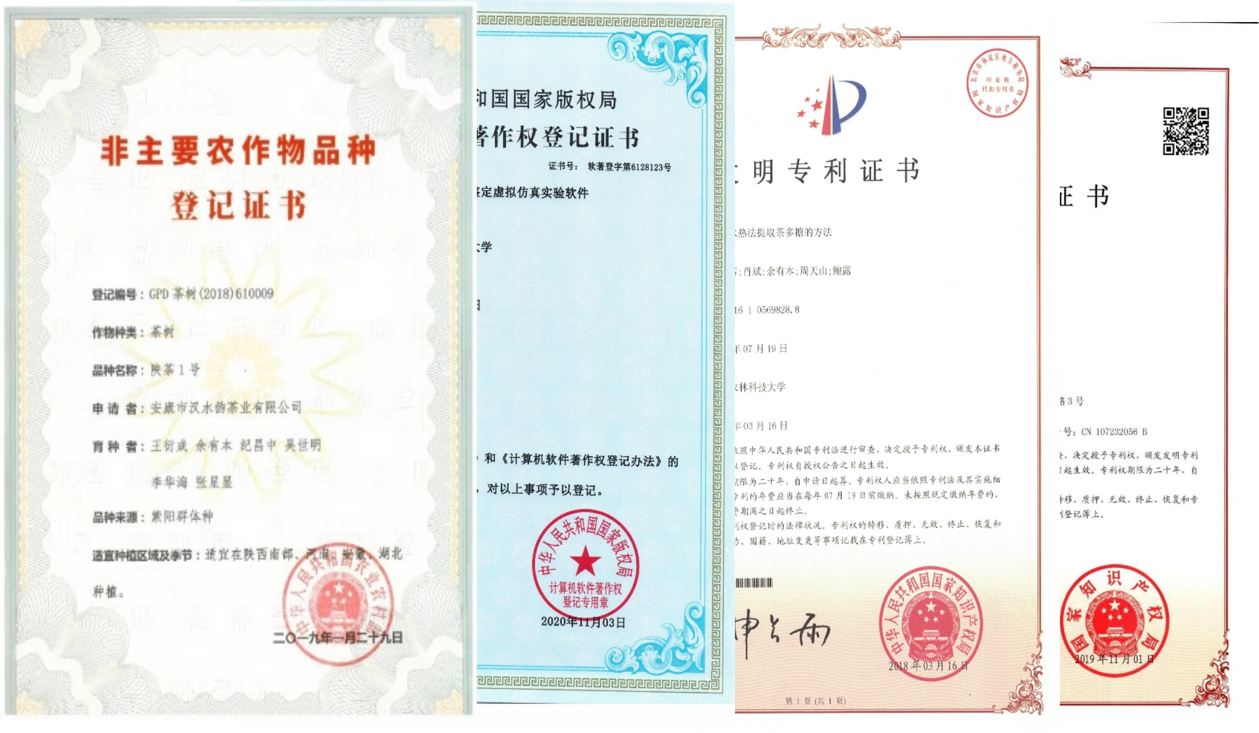 At present, we have collected 343 tea germplasm resources and the systematical evaluation has beencompleted in our university. The first improved variety of tea plantCamellia sinensis‘ShaanCha 1’in Shaanxi province has been bred. In addition, our group have analyzed the effect of various abiotic stresses on the physiological property and quality of tea plant, and researched the molecular mechanisms in response to these abiotic stresses. Furthermore, we have developed series of green, black and Fuzhuan tea products with diverse technologies pertinent to tea production being remarkably advanced and extensively applied, including clonal breeding of tea plant, increase the production of low-yielding tea plantation, comprehensive utilization of tea resources in summer and autumn, clean processing of tea and prevention of pest in tea plantation. We have cultivated 1 improved variety of national-level tea plant and obtained 2 national invention patents with over 200 papers and 9 books.