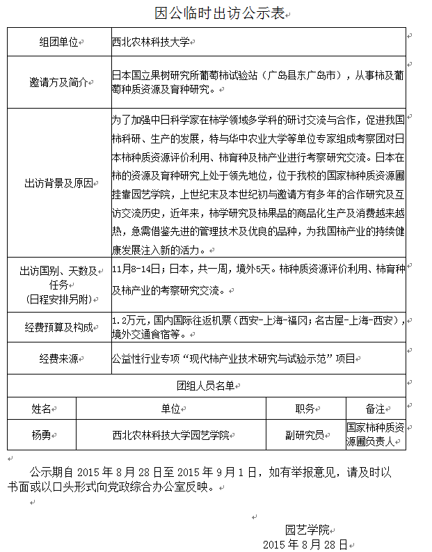 因公临时出访公示