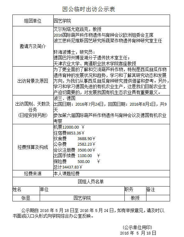 因公临时出访公示表