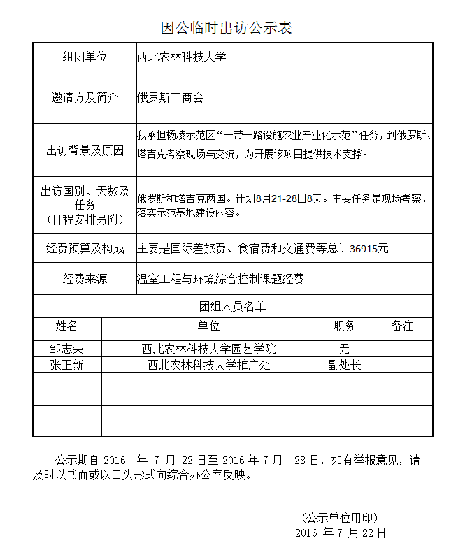 因公临时出访公示