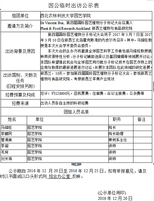 因公临时出访公示表