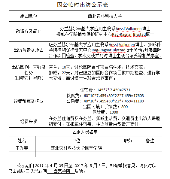 因公临时出访公示