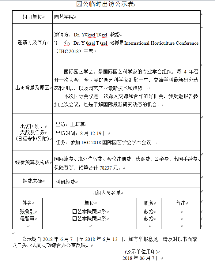 因公临时出访公示