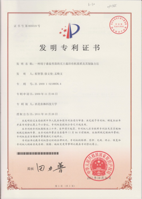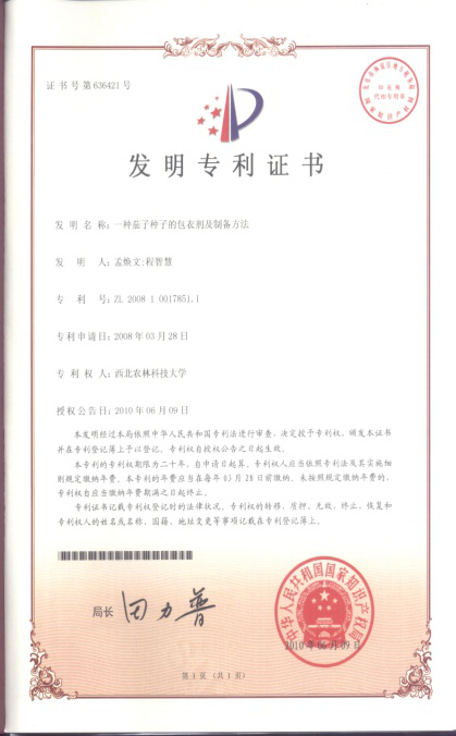 We have published in total more than 200 academic papers including more than 40 SCI papers. We got 3 “Second prize of Shaanxi province Scientific and technological progress in 2004, 2006, 2009 respectively. We have awarded 4 national patents and 2 new cultivars were approved.