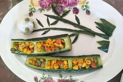 一道名为 “金灿玉翠玉米盏” 的菜品备受瞩目。“金灿” 形容玉米粒金黄的色泽,“玉翠” 描绘黄瓜翠绿的颜色,“玉米盏” 则点明了菜品的主要食材与呈现形式。参赛员工巧妙地将课堂上学到的园艺知识融入实践,从食材的精挑细选到细致处理,从火候的精准把控到调味的恰到好处,从营养的合理搭配到摆盘的精心设计,充分展现出 “一草一木总关情” 的专业素养。