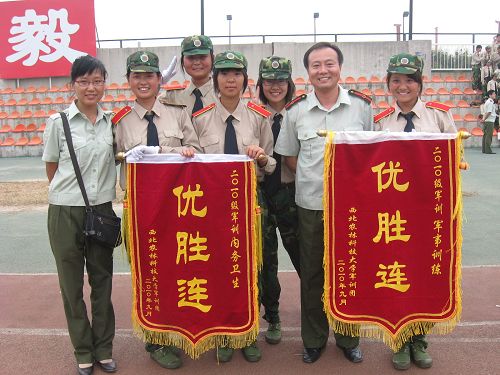 在总结大会上,园艺三连的同学们受到军训团的光荣表彰,并荣获军训团授予的两面锦旗––“军事训练优胜连”和“内务卫生优胜连”。