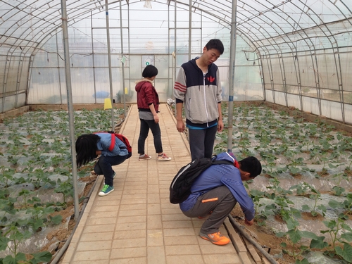 下午三点左右田园使者们到达了对接的合作社,同合作社的负责人魏叔进行交接工作。队员们首先积极去了解合作社的基本情况,如种植作物,生产模式,以及营销策略等,提前预想以后可能要面临的问题。然后他们前往合作社的大棚,了解生长中作物的状态,以及生长情况,同时去和工作的阿姨们了解作物的时常会遇到的病害,这样可以及时请教老师,并通过自身的学习,方便日后解决他们的问题。