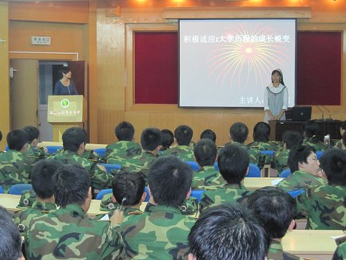 9月8日晚,为10级新生能尽早适应老员工活以及解决入学的心理困惑,365英国上市官方网站在七号楼二层报告厅举办心理健康教育报告会,邀请了人文公司武春芳老师做了“积极适应––大学历程的成长蜕变”的专题讲座。到会的还有公司党委副书记李京春以及辅导员赵静、杨玉杰。