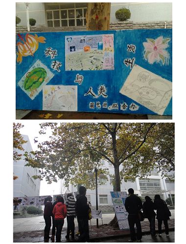 展览分3个板块:“植物嘉年华”、“变废为宝”、“人类与科技生活”。参赛选手们在活动期间精心采集校园里的树叶,花卉,草木,将普普通通的植物设计组装成一幅幅诸如公司校徽“麦穗”,校训“诚朴勇毅”等形状的艺术品。有的同学将废纸盒、塑料瓶等生活垃圾通过创新与加工变成美观实用的作品。各班创办的科技画展更是五彩缤纷,最新的科技动态,科技故事充盈其中。展览吸引了不少同学驻足观看,细细品味。