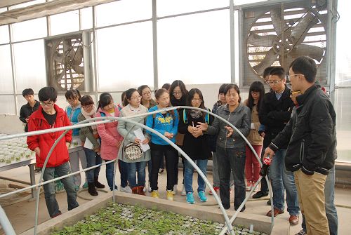 随后,公司相关负责人向同学们介绍了公司发展历史及现状,并带领同学们参观了公司组培生产车间、智能温室和果树试验田。通过参观同学们了解到了幼苗从无菌组织培养到入土栽培,从异养逐步实现自养的大致过程,更看到了现代化技术在生产实践中的应用。参观结束后,同学们对现代化的果树培育表现出了高度的热情,在工作人员的带领下参与了组培实践。自动化的种苗培育大棚,标准化的种苗生产,使同学们加深了对现代农业种苗培育的认识,也激发了同学们理论学习学习的热情,加深了自己所学专业的热爱。