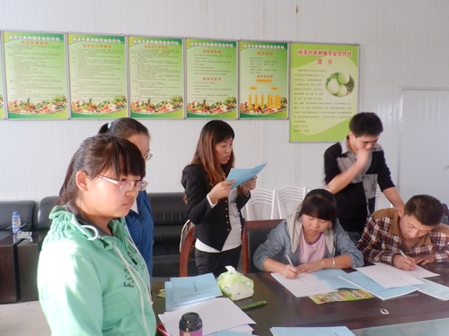 公司八名同学在合作社郭春迎老师的指导下分别就杨凌统供情况,示范园区标准化生产溯源记录,120户社员交易记录等方面进行资料的整理。公司学子积极与老师进行交流,热情提问,耐心记录,了解了甜瓜、白菜、西红柿、辣椒等几种农作物的生产周期,生长情况以及近期采摘记录。并帮助合作社的老师整理了合作社社员近期交易记录和收入情况的资料。