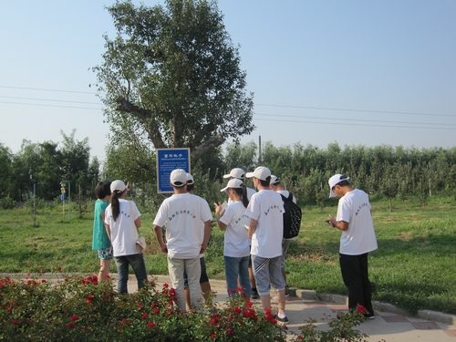 在段老师的带领下,队员们仔细地观察了嫁接的富平楸子树,同时聆听了关于果树嫁接的不同方法及注意事项的详细讲解,对果树嫁接技术有了更深入的认识和体会;此外,队员们还了解了节水灌溉,膜下灌溉、膜下交替灌溉等各种果树灌溉的的作用以及其中的差异,并且从中悟出了一个道理:每一个细节的发现都有可能创造出一项新的科技成果。科研人员们夜以继日地在果园里辛勤劳作,苦心研究,就是为了创造更多新的品种,提高果农的经济效益,实现一个农业专家的“中国梦”。