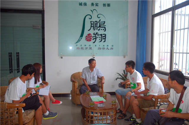 接下来,我们调研了陕西省的产茶龙头企业鹏翔茶叶有限责任公司,公司董事长段成鹏接受了我们的采访。他讲述了公司的发展历程以及近几年的经营状况。多年来他一直本着“诚信为本,质量把关”的经营理念,使公司的经济效益稳步增长,公司先后被评为“2010年度陕西省十强茶叶企业”,“农科先进示范基地”等。随后,段总带领我们参观了茶叶生产车间和茶副产品(如茶粉)生产车间,车间内高度卫生的工作环境展示出了鹏翔人“诚信务实创新”的理念。他表示在他的不懈努力下一定把鹏翔品牌做的更大、更强,走出国门,推向世界!