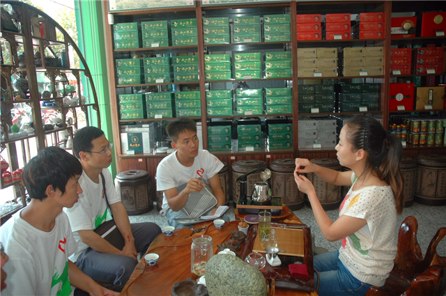 随后我们调研了西乡县南山茶叶有限责任公司,该公司是一家集茶叶种植、生产加工,市场营销和茶文化研究、传播为一体的现代化茶叶龙头企业,在公司董事长喻少洪的带领下,南山人本着“求真务实,诚信勤奋,开拓创新”的企业精神,立足于茶行业中,他指出在南山人的共同努力下,一定会实现“全国领先,西北一流”的企业梦。在南山茶业有限公司,营销店长为我们展示了精湛茶艺,向我们介绍了公司的茶产品远销西安、宝鸡及山东等地。公司的发展方向是靠品质赢得信誉,把规模越做越大。