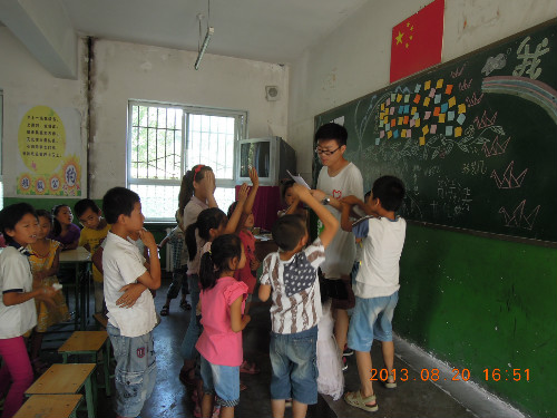 志愿者向大家教授了音乐、英语、手工、绘画等方面的知识,同时也针对员工暑假作业安排辅导,上午志愿者以一堂生动的英语课顺利将此次支教活动拉开帷幕,在课堂中,孩子们所表现出强烈的求知欲望让队员们很是震撼。下午,一场主题为“我们的梦之中国梦”的梦想活动,将全场的氛围推向高潮。活动中志愿者给孩子们做了精彩的“中国梦”宣讲,并鼓励孩子们将自己的梦想通过不同的方式表达出来。志愿者们热情地交换了自己的“中国梦”,孩子们也在志愿者的鼓舞和引导下大声说出自己窑洞里的“中国梦”,孩子们和志愿者在纸条上共同写下自己的“中国梦”,并贴在了梦想墙上。