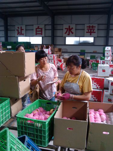 来到昌盛集团,队员们的第一印象就是大。“是的,不光厂区大,我们的产业链以及冷库贮藏量都是白水县最大的。”市场包装部刘助理这样告诉队员们。“我们企业的特色在于‘线上线下双管齐下’,线下服务项目包括百万亩认证果园、百万吨认证果库和银企战略合作,线上服务项目就是陕西苹果团购网。”公司旗下拥有陕西洛川苹果物流中心,陕西礼泉苹果物流中心和陕西白水苹果物流中心。三大物流中心形成了中国最大的苹果集散中心、信息交流中心和物流配送中心。据刘助理介绍,公司制定了“以果蔬物流中心为主体,以高科技果蔬包装和果蔬产业开发为两翼”的经营战略。昌盛集团现已发展成为一家集农业产业化开发、果蔬种植加工、高科技果蔬包装、贮藏、营销和果蔬服务贸易为一体的农业企业。