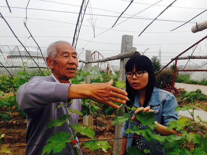 除草结束后,合作社的魏师傅随后带领使者们来到葡萄棚,现期棚内的葡萄已经开始结果,葡萄呈二叉分枝生长,人工系藤,不需要长须,因此要为葡萄掐须使营养更多地运向果实。队员们仔细聆听魏师傅的讲解之后,随即将理论付诸于实践,小心翼翼的将每一个葡萄株的长须掐去。从开始的不熟练到后来掐的既“快”且“准”,成为“掐须小能手”,队员们越来越懂得躬亲实践的重要性。