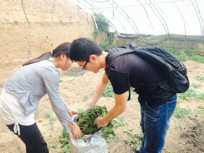 自古圣贤之言学也,咸以躬行实践为先,识见言论次之。刚到达合作社,队员们就迫不及待开始帮助农户除杂草,农户反映大棚里的杂草影响了蔬菜的健康成长,而且有的种苗已经失去了活力而萎焉,这些都需定期清除。在队员们的帮助下,杂草很快清除完毕。清除杂草虽为一件简简单单的事,但队员们仍旧不顾炎热一丝不苟地将一颗颗杂草清除,看着周围茁壮成长的种苗,他们露出了灿烂的微笑。
