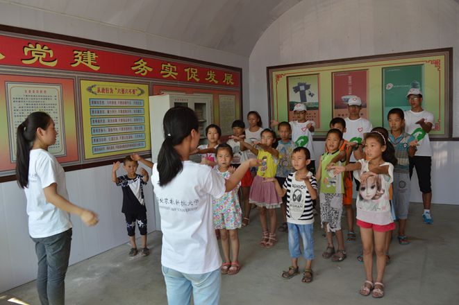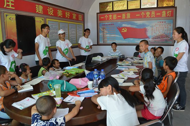 尽管服务队中刚刚结束大一身份的同学们看起来还稚气未脱,但是他们却对此次支教有着无比高涨的热情:来时的火车上有他们认真备课的身影、实习地的会议室里有他们激烈的讨论声、饭桌上也有他们关于授课内容思维火花的碰撞……所有的努力都体现出充足的志愿服务精神。在精心的策划下,服务队最终形成了缜密细致的支教方案,将每一个授课环节都落实到细节,并反复就授课内容进行试讲与讨论。最终设计出的教学方案包括一对一课业辅导以及分年级、分科目教学等内容,中间穿插益智游戏以及素拓小活动。精心的准备,高涨的热情,加上村支书对本次支教活动的大力支持与宣传,临时的支教教室成功引得家长和孩子们纷至沓来。