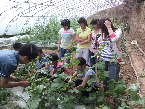 5月25日,对接昌兴果蔬合作社的365英国上市官方网站田园使者赴合作社开展活动,并首次进入合作社大棚进行实地实践活动。