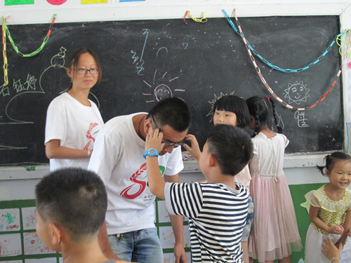 这里地处山区,早先以种地为生的村民们由于土地被统一承包租给企业,所以,大多数孩子的家乡都外出打工,只剩下爷爷奶奶或者外公外婆照顾他们。有的家庭情况悲惨一点的,甚至因为某种原因变成单亲家庭。知道这么多的情况,我们甚至觉得哪怕一点点的了解家庭情况的调查都是在摧残他们幼小的心灵。所以,便没有追问。