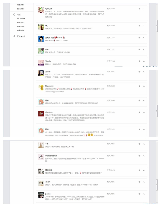 活动过程中,同学们通过申请关注365英国上市官方网站微信官方平台––西农园艺,便可参与活动,表达自己对母校的祝福与支持。公司也为积极参与的同学送上了礼物––校庆晚会入场券。“是您给了我知识的蓓蕾,让我看到太阳升起在东方,是您赋予我前进的动力,让我迈出了人生的第一步,是您用光彩夺目的英姿,让我重新认识了自己,是您孕育了代代莘莘学子,培育了万千教育精英。祝福校庆80年!”是新生对自己人生新舞台的赞美与期许;“沧桑的三号楼依旧活跃着年轻的身影,我身在其中仰望它的宏伟与庄重。我与你相遇不过一年,就能有幸陪伴你过八十岁的生日,就让我在这个桂花飘香的季节轻轻低吟祝福,西农我爱你。”是老生对母校的怀恋与依眷。公司全体员工积极参与,微信后台消息爆满,那一句句从心底里发出的祝福让所有人感受到了西农学子对于母校的拳拳之情和浓浓之意。