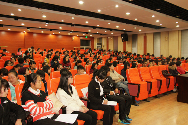 在主持人介绍结束后,窦老师在大家热烈的掌声中欣然走上讲台。整场讲座中老师以生活、学习、发展、恋爱为主线,详细地为大家介绍了大学中常见的问题及解决方法。老师生动形象的例子深深地吸引着我们,在轻松欢快的气氛中结束了讲座。
