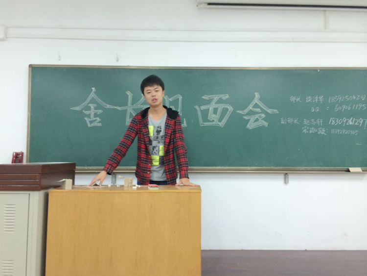 生活部部长谈泽华说:“生活部的工作是以宿舍为起点的,各位舍长就是我们与全体同学之间的桥梁,我们希望和舍长一起努力,让宿舍生活,校园生活,更加丰富精彩!”