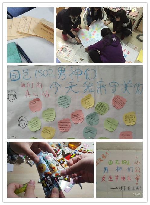 这一天,园艺1502班的同学们另辟蹊径,完美的诠释了女生节另一个意义――做懂得感谢与回报的新时代女性。自立自强的她们,记得男生们平时给予的点滴关爱,在女生节这个特殊的日子里,用心意回馈、感谢男生平日里对女生的照顾。或许男生守护女生已经是大家眼中的常态,但是今天园艺1502班的女生们大声发出自己的宣言:“男神们,谢谢你们,今天,由我们来守护你们!”愿这青葱岁月中点滴的感动永远留在大家的心底,愿园艺1502班的女生永远都如此自信、自立!