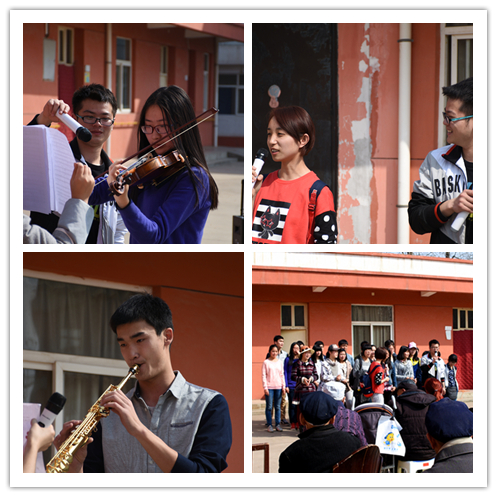 同学们还为福利院精心准备了精彩的节目。第一个节目,是由王翰林同学带来的萨克斯演奏,《茉莉花》,细腻清新的中国民歌让老人们格外享受,悠扬婉转的乐声让玩乐的孩子们也都安静了下来。第二个节目,团支书黄明俊的歌声点燃全场——《最炫民族风》,明朗的节奏让老人小孩们都打起了欢快的节拍。第三个节目,是由学委宋林姝为老人们带来的小提琴演奏,时而幽远时而明快的《乔家大院》,让大家陶醉不已。第四个节目,园艺三班全体同学为大家带来合唱《光阴的故事》,清亮的女声和浑厚的男声,充满了年轻的朝气,让老人们笑容满面。第五个节目,是由组织委员杜天欣和团支书黄明俊合唱的《因为爱情》,优美的歌声让大家心情舒畅。园艺三班多才多艺的同学们让福利院的老人、孩子们享受了动听的音乐,而他们的欢声笑语,对园艺三班的同学们来说,又何尝不是天籁呢?
