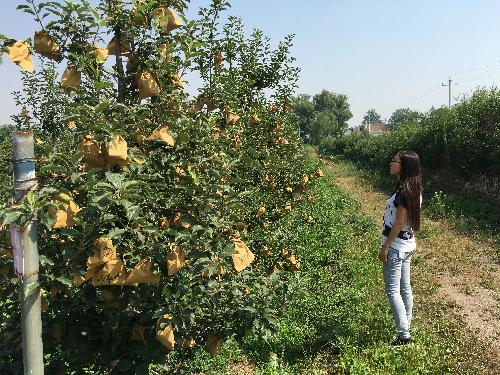 在帮助农户施药结束后,队员们来到汇承苹果农庄,据当地工作人员介绍,这是一所依托西北弄农林科技大学先进的果业技术以及现代话的园区种植基地,与此同时,这所农庄植入了苹果为主的休闲体验性旅游产品,形成了体验带上以苹果为主的特色农业庄园,在参观的过程中队员们还发现为了避免杨凌地区酷暑时节阳光直射果实导致果实灼伤,几乎所有的苹果都被农户套了袋,部分苹果树上出现了不同程度的霜霉病,队员们依靠从课堂上学到的专业知识帮助农户提出解决办法,从实际行动中做到了智为民所用。
