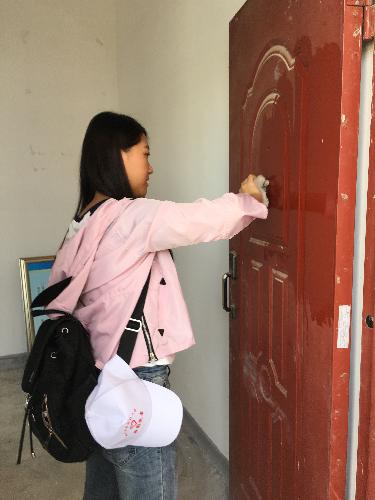 当队员们到达帅家村的时候,村主任兼合作社社长袁芳婷女士正在带领着村里的妇女擦玻璃,欲以一个良好的精神风貌迎接“七一”建党节的到来,队员们首先表明了此次活动的主要内容,随后便帮助村委会干起了打扫卫生的活,在劳动中,袁芳婷女士谈到,每年的这个时候都要组织村子里的妇女来打扫卫生,积极响应区政府的号召,为“七一”的到来做好准备,弘扬党的精神,响应党的号召。