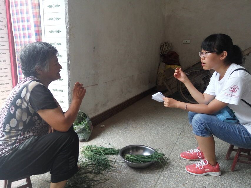 虽然艳阳高照,挥汗如雨,但队员们依旧怀着对调研工作的热情,不辞辛苦地跑遍村子的每个角落,为每份问卷填写充实的数据。