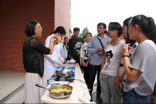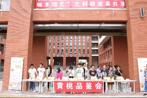 公司老师和同学于9日下午16:30-18:00在南校区园艺楼下参加了黄桃的品鉴会,并领取了科研黄桃。活动现场共分为两个模块,其中一个模块是为广大师生现场发放新鲜的黄桃,另一模块是何玲老师带领研究生现场演示黄桃罐头、黄桃酸奶的制作方法,并供参观人员品尝。