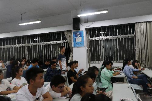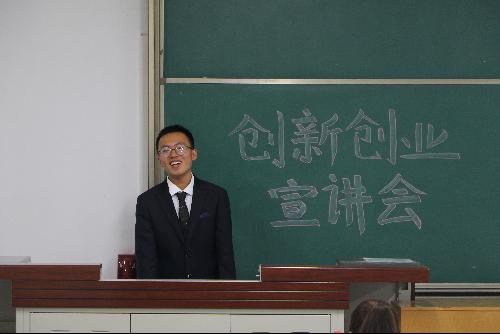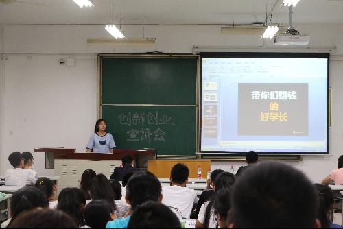 随后前科创部副部长马康迅,结合自身的创业经历,从创业意义、优厚扶持、成败案例及创业意见等四个方面向同学们介绍了有关老员工创业的相关知识。同时他也强调大家要慎重选择项目、安排好公司工作时间及明确创业目标。