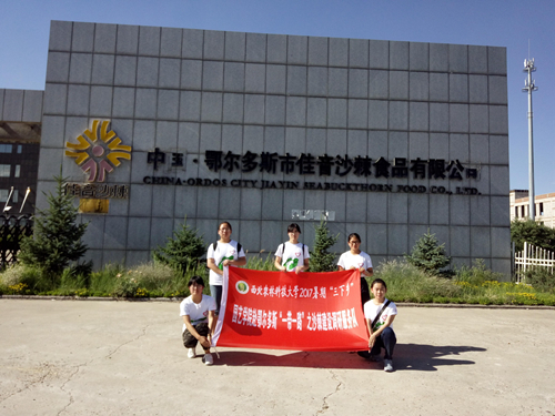 本次对佳音沙棘食品有限公司的调研活动,使成员们获得了很大的收获。成员们不仅对沙棘的生产状况,加工方法,种植模式,宣传渠道有了大致的了解,还对当前中国沙棘有益可取却无利可图的现状有了大致的认识。成员们普遍认为应该趁着习主席关于“一带一路”活动的展开,对沙棘进行大力宣传,使人们认识到沙棘的优点,同时加强对沙棘产品的研发,让沙棘产业在中国获得更好的发展。