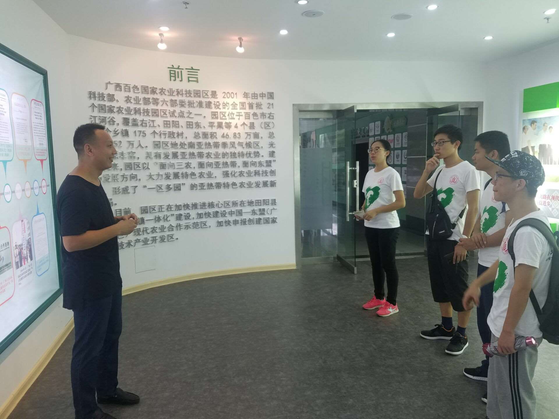在广西百色国家农业科技园区,队员们在园区负责人王勇的陪同下参观考察了园区展厅和芒果种质资源圃。参观过程中,队员们深入了解了担负着探索解决我国西南地区石漠化综合治理、优势产业提升发展和面向东盟“走出去”的国家使命的广西百色高新区,如何通过发展以生物健康、先进装备制造和新材料为主导,充分发挥区域资源优势,依靠科技创新推动革命老区、贫困地区资源优势转化为经济优势,进而实现促进“三农”发展和全面建成小康社会的目标。