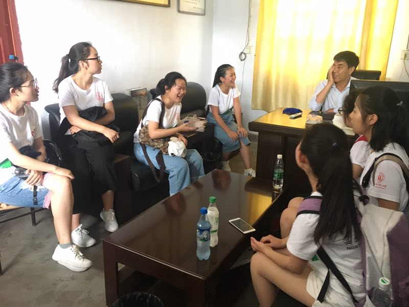 在前期问卷调研的基础上,队员们带着对行鼓的疑问与好奇来到了韩城市人民艺术剧院。在与剧院总经理吉胜虎的交流中,队员们了解到韩城行鼓现已多次走出国门,到世界各地演出,演出规模最大可达600人,年演出次数可达180场;在表演形式上,不断推陈出新,和陕西秦腔、延安老秧歌等其他带有西北特色的传统文化相结合,全面打造多元化发展方向;在传承方面,西塬村小学和新农职中艺术公司会定期开展行鼓教学,在今年已有由西塬小学的员工组成的鼓队代表韩城在央视《魅力中国城》栏目上演出。在交谈结束之际,吉先生骄傲的说到:“咱们韩城行鼓的发展现在也慢慢趋于产业化,这也可以号召更多的人来加入到咱们行鼓的大队伍中。”