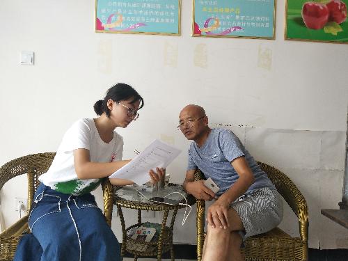 “大众创业,万众创新”的标语在园区入口格外引人注目。志愿服务队队员们分头在园区内林立的商铺开展调研。商铺负责人们热情地接纳队员们,积极地填写调查问卷,并耐心地为讲解着近两年的苹果销售形势。