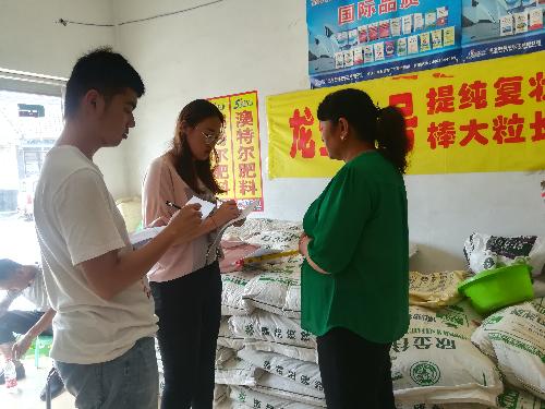 从村民家里出来后,队员们又马不停蹄地赶往了交道镇中心肥料市场。虽然现在是化肥交易的淡季,但还是有不少肥料店正在营业。通过走访肥料市场队员们了解到,现在的肥料店中化肥和有机肥都在出售,从出售整体情况来看二者的销售量并不悬殊,但是据果农们反应,在同等条件下连年使用有机肥比使用化肥来说产量会有所上升,所以肥料商正在逐步加大有机肥售物进货量。同时据肥料商反应,肥料市场中仍旧有一些假冒伪劣产品存在,每年仍旧有一部分果农上当受骗,所以有关部门应加强对这一部分的监督。
