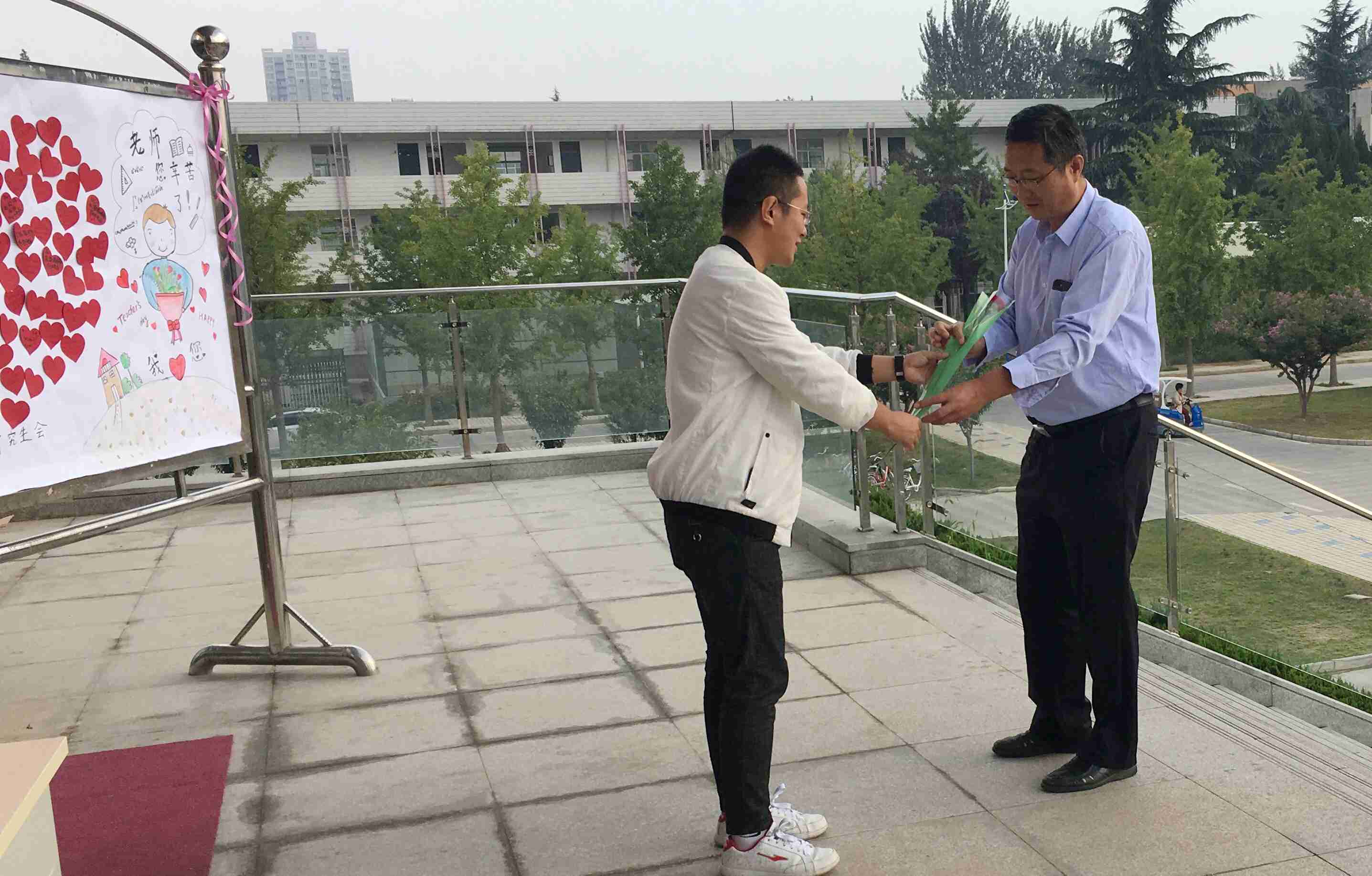 9月10日教师节当日,员工代表与公司楼前为老师们送上了教师节的第一支鲜花,并向老师送上最诚挚的祝福。看到老师们收到鲜花时流露出的高兴与欣慰,大家心中也十分喜悦感动。