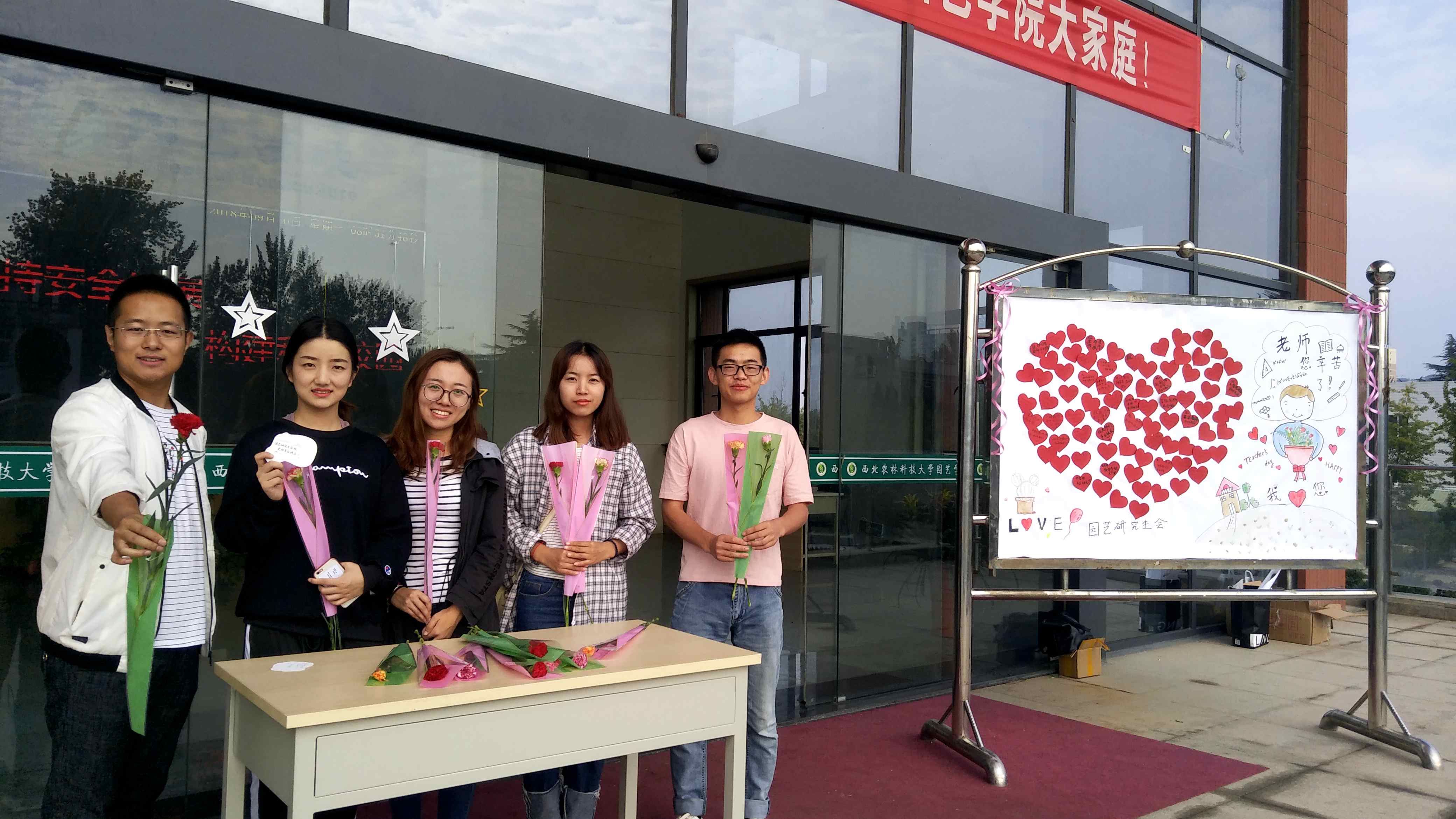 9月9日教师节来临之际,公司研究生会提前组织绘制了祝福墙,并向全院员工征集合影与送给老师的节日祝福,并在现场发放精美贺卡和康乃馨花束。同学们将最想对老师说的话,对老师的祝福写下来汇集成祝福墙,将一份贺卡献给恩师。