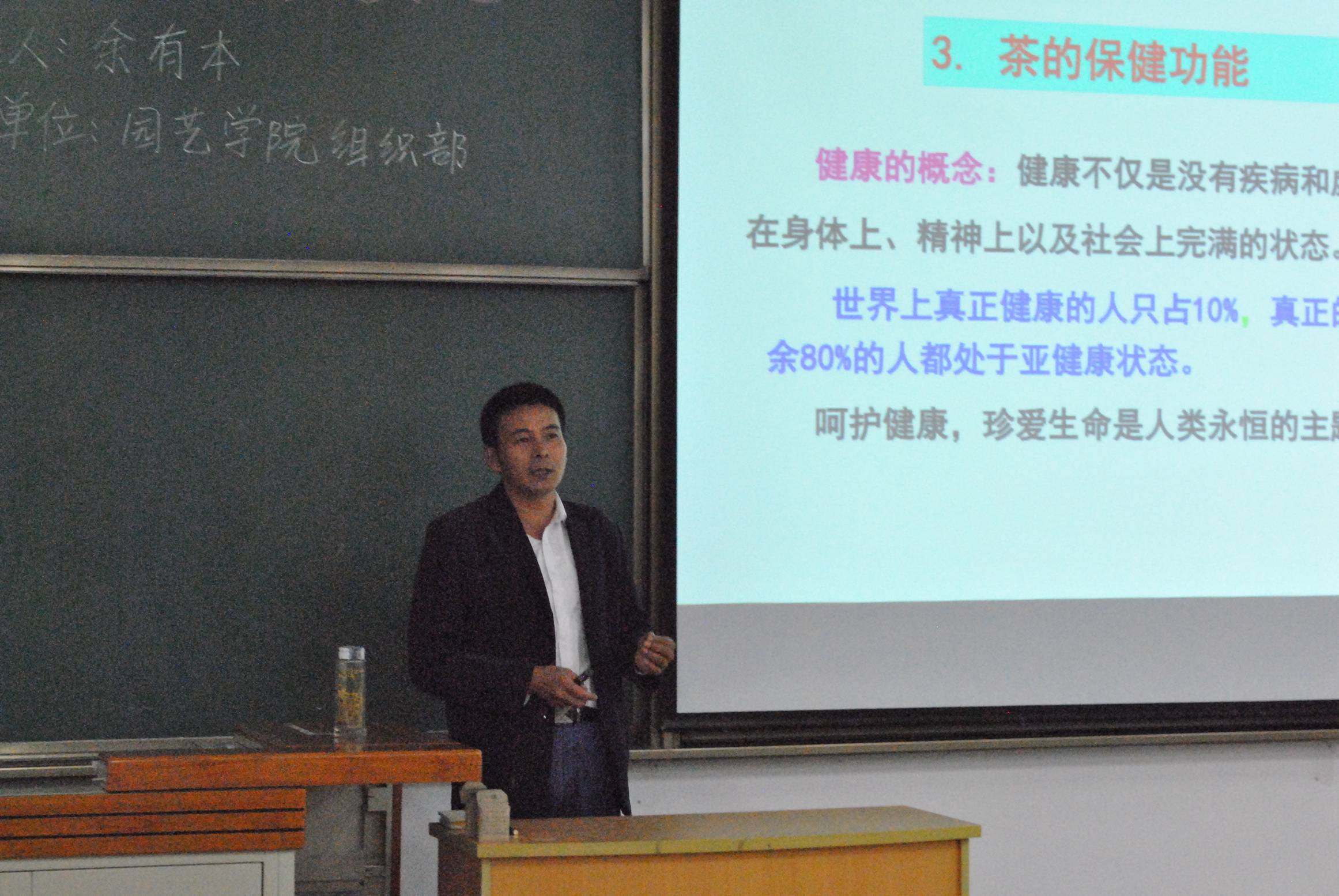 11月2日晚,365英国上市官方网站于北校八号教学楼8T01举办了以“中华国粹之茶文化”为主题的讲座,主讲人余有本老师为同学们讲解了许多关于茶的知识,使同学们对茶文化有了更深的理解。