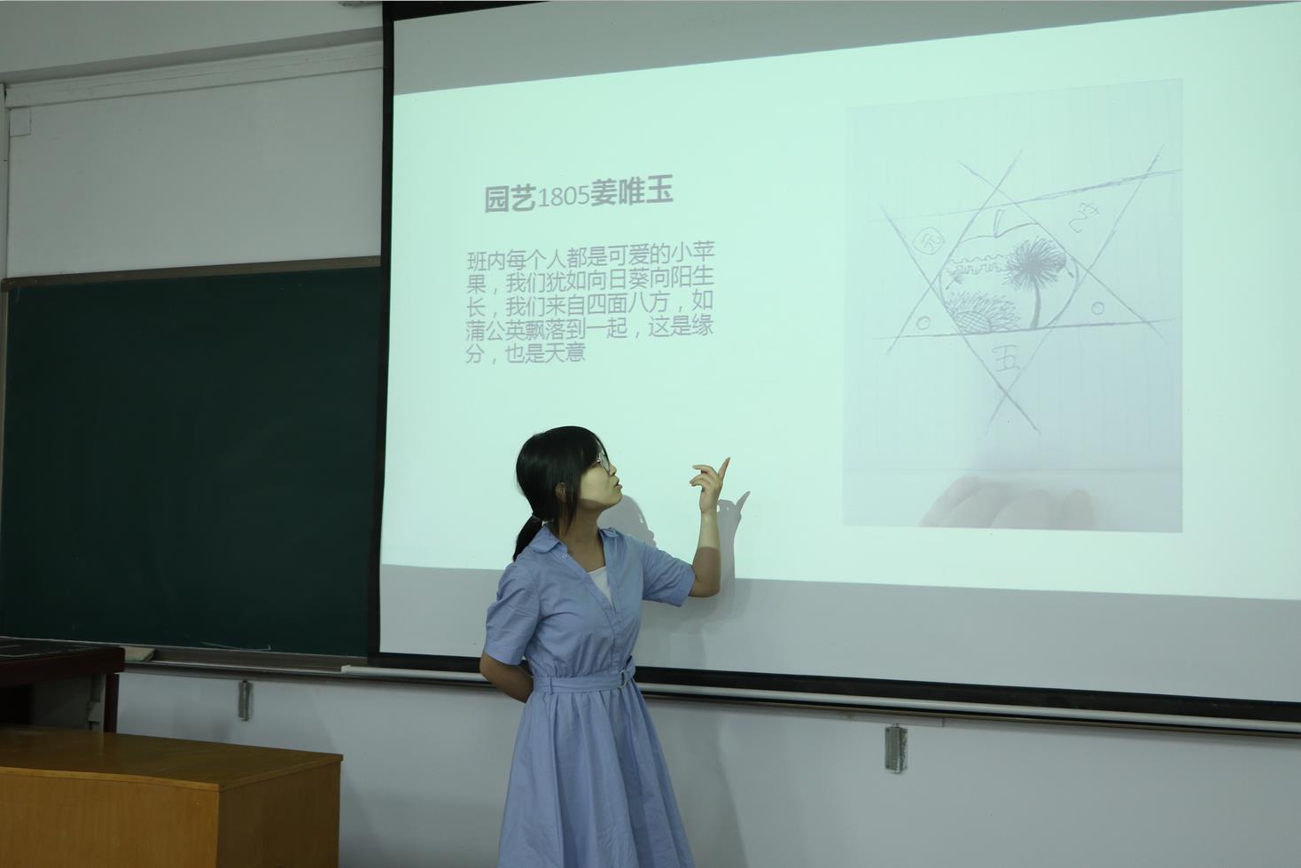 本次比赛中的总得分是以网络投票所得分数与答辩现场评委点评分数共同组成。园艺1805班的胡彦嵘同学以“看霞染渭水,听凤鸣高岗”为理念的写意山水为背景,通过五角星,心形花枝等设计表现五班同学具有鲜明的个性,相亲相爱、互帮互助的团结精神。最终此设计以充满独特创意,蕴含丰富寓意的设计获得了一等奖,园艺1805班也获得了团体优秀奖。