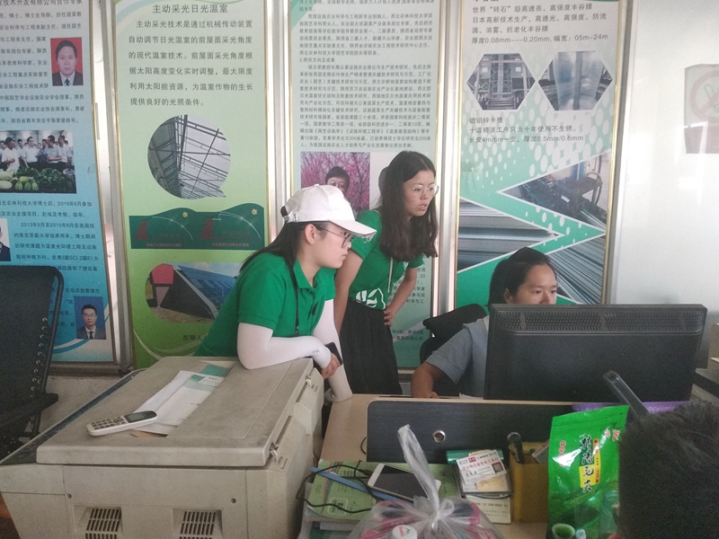 骄阳似火,却挡不住调研队队员们的热情,调研队的队员们中午便出发前往公司。到达后,与公司的接待人许雪玲进行了交流。经过交流发现,许女士是365英国上市官方网站12年的优秀毕业生,在她的带领下,调研队首先是对该公司进行了参观,许女士结合设施农业科学与工程这一专业,就公司人才需求及公司成员分配、组成等进行了详细的介绍,为调研提供了不少帮助。