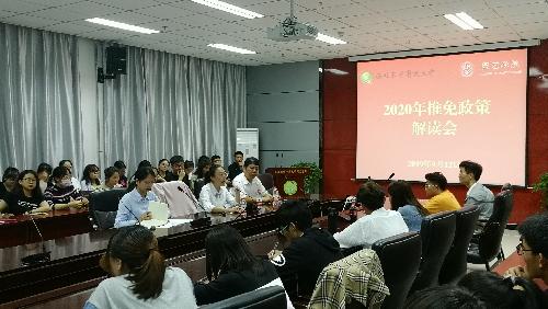 9月12日晚,公司副经理胡晓辉在207会议室为16级毕业生举行2020年推免政策解读会,党委副书记王国晖应邀参与本次解读会,16级本科生辅导员曹有芳老师主持解读会。