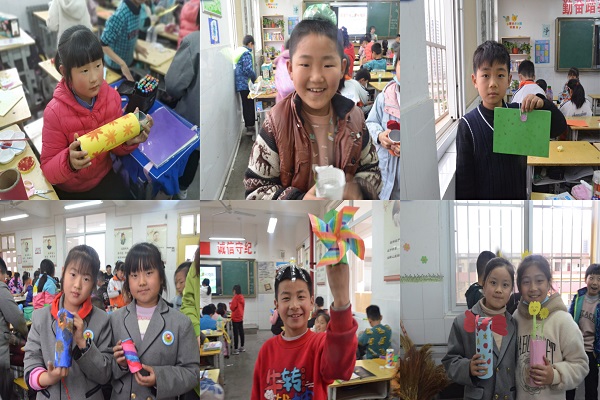 设施1801班王菁谈到:“今天的张家岗小学‘变废为宝’活动,尽管我没有提前准备很多东西,但进入到小学教室后就发现其实孩子们都很有自己的想法,而且做东西上手很快,能把一些我们大人看起来并不起眼的东西都利用到自己的小手工中,教他们‘变废为宝’的同时,他们也在教我孩子的细致观察力和说到就去做的动手能力有多珍贵。整个下午都过得很快,仿佛被孩子的单纯感染到了。这次活动让我再一次感受到和小朋友在相处的乐趣,也发现了小朋友的创造力。”